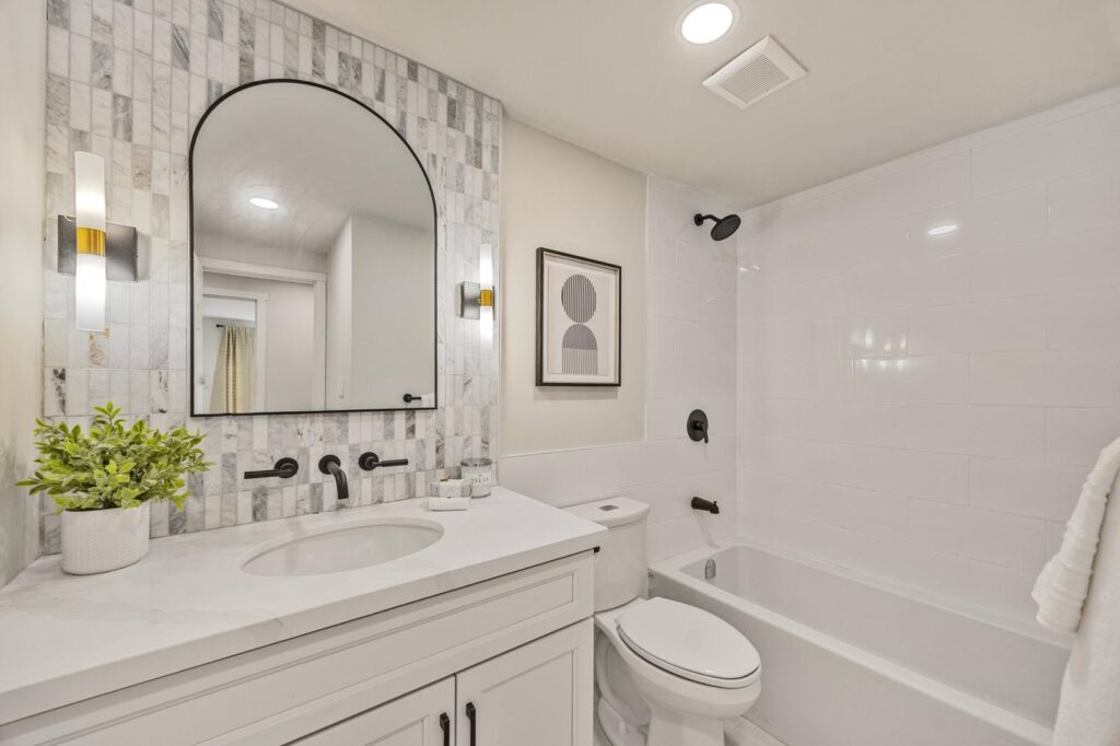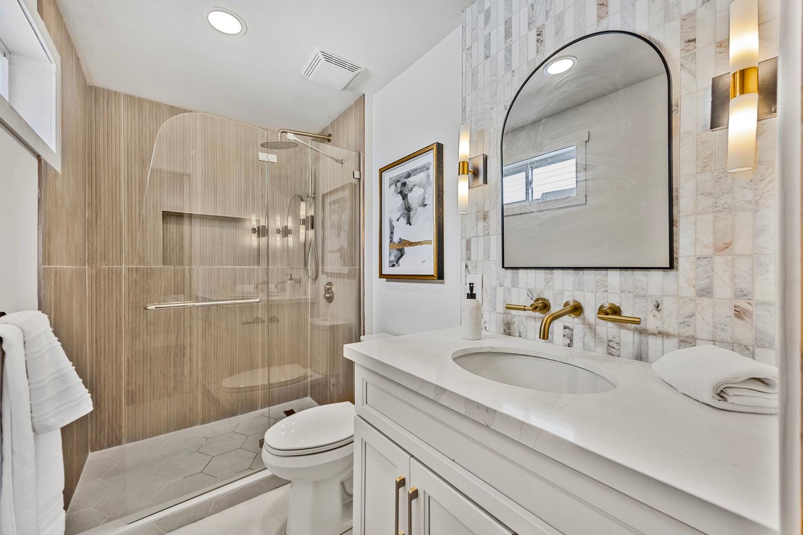 An elegant transformation for an outdated bathroom space.